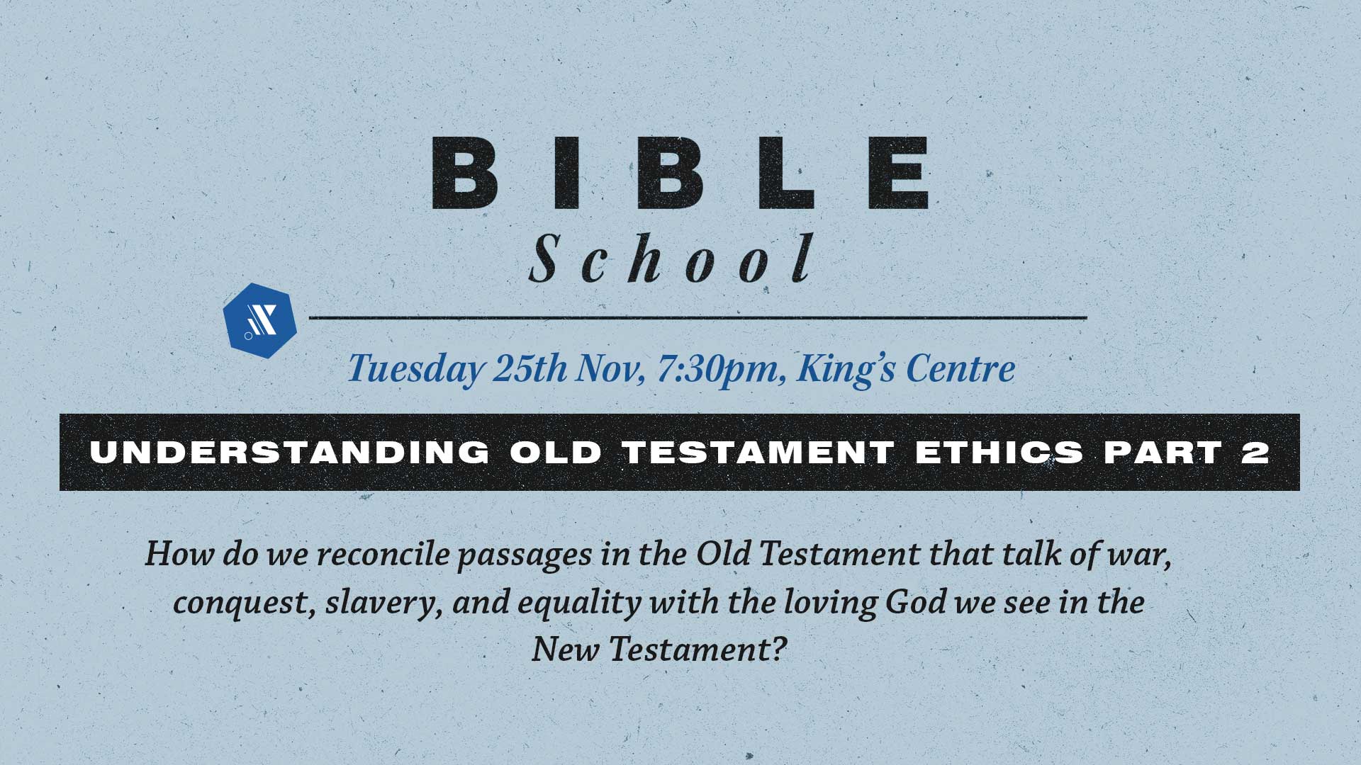 Come and join us for an evening at King's where we open up and study the Bible in a bit more detail, this time looking at "Understanding Old Testament Ethics", part 2".